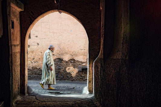 The Streets Of Marrakesh White Modern Wood Framed Art Print with Double Matting by Flour, Piet