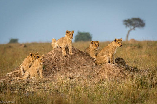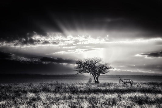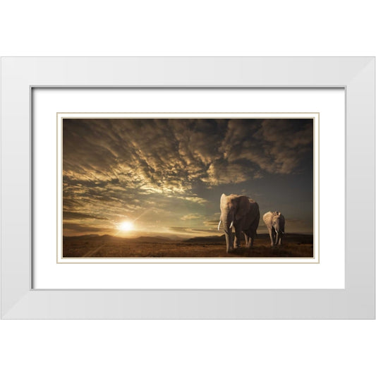 Walking In Savannah White Modern Wood Framed Art Print with Double Matting by Carvalho, Jackson