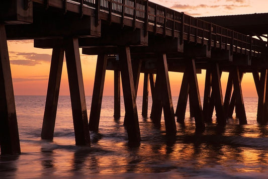 USA- Georgia. Silhouette of a pier in the sunrise- near Savannah. White Modern Wood Framed Art Print with Double Matting by Wells, Joanne
