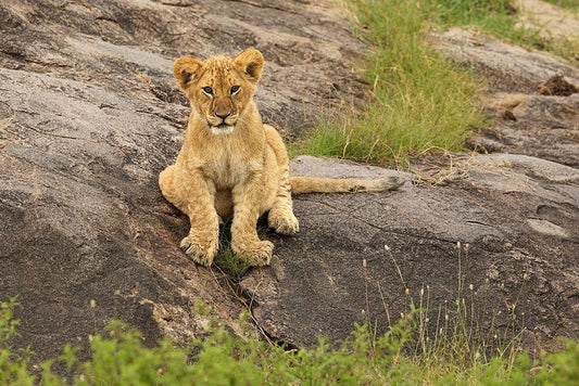 Lion Cub-Panthera leo-Serengeti National Park-Tanzania-Africa White Modern Wood Framed Art Print with Double Matting by Jones, Adam