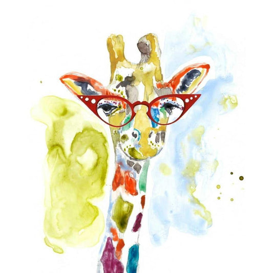 Smarty-Pants Giraffe Gold Ornate Wood Framed Art Print with Double Matting by Goldberger, Jennifer