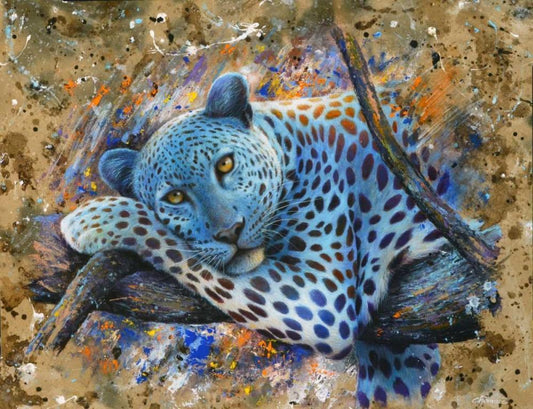 Leopard White Modern Wood Framed Art Print with Double Matting by Chamard, Jean-Marc