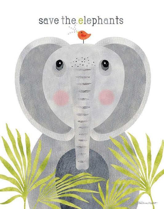 Save The Elephants White Modern Wood Framed Art Print with Double Matting by Marrott, Stephanie