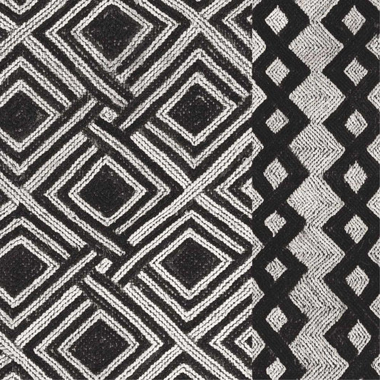 Kuba Cloth I Square II BW Gold Ornate Wood Framed Art Print with Double Matting by Wild Apple Portfolio