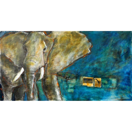 Fancy Elephant Gold Ornate Wood Framed Art Print with Double Matting by Medley, Elizabeth