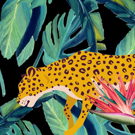 Palm Leopard 1 Gold Ornate Wood Framed Art Print with Double Matting by Allen, Kimberly