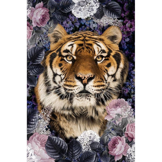 Tiger Deep Floral Gold Ornate Wood Framed Art Print with Double Matting by Allen, Kimberly