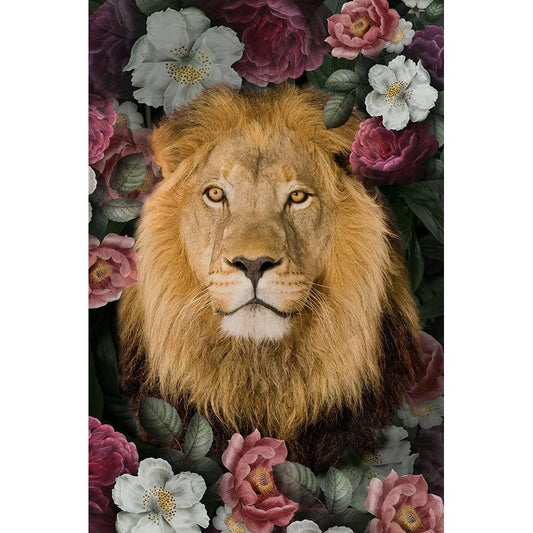 Lion Deep Floral Gold Ornate Wood Framed Art Print with Double Matting by Allen, Kimberly