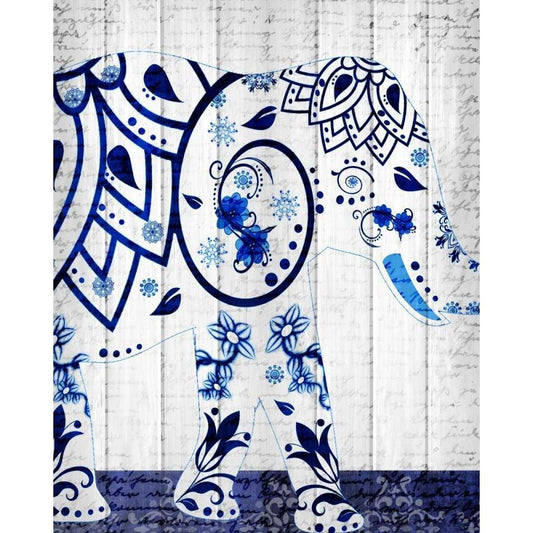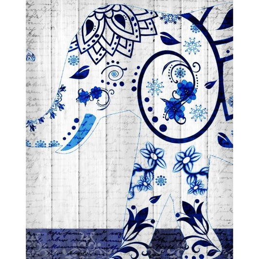Indigo Elephant 1 Gold Ornate Wood Framed Art Print with Double Matting by Allen, Kimberly