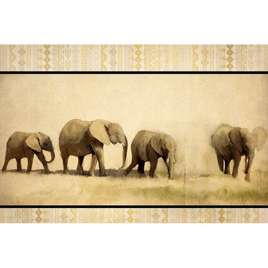 Tribal Elephants Gold Ornate Wood Framed Art Print with Double Matting by Kimberly, Allen