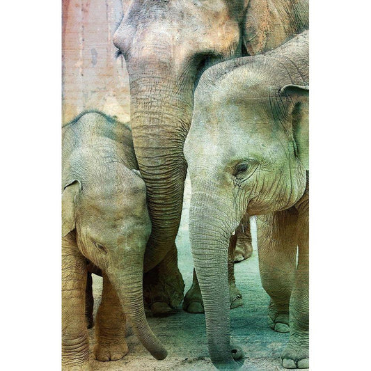 Elephant Family Gold Ornate Wood Framed Art Print with Double Matting by Kimberly, Allen