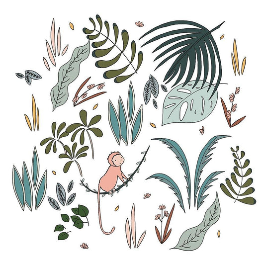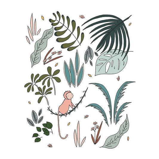 Botanical Jungle Monkey Gold Ornate Wood Framed Art Print with Double Matting by Sweet Melody Designs
