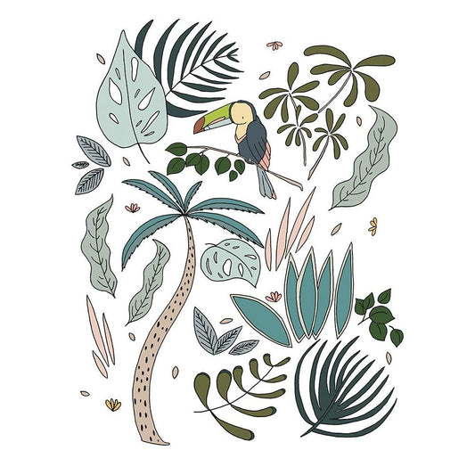 Botanical Jungle Toucan Gold Ornate Wood Framed Art Print with Double Matting by Sweet Melody Designs