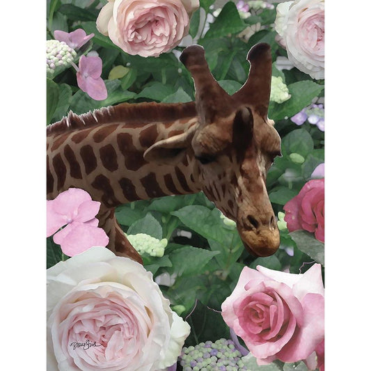 Floral Giraffe Gold Ornate Wood Framed Art Print with Double Matting by Stimson, Diane