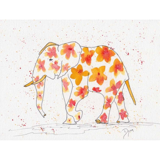 Elephant Flower Gold Ornate Wood Framed Art Print with Double Matting by Dyer, Beverly