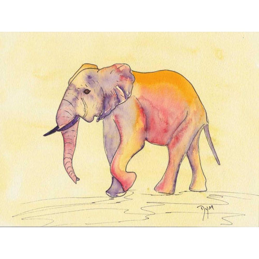 Rainbow Elephant Gold Ornate Wood Framed Art Print with Double Matting by Dyer, Beverly