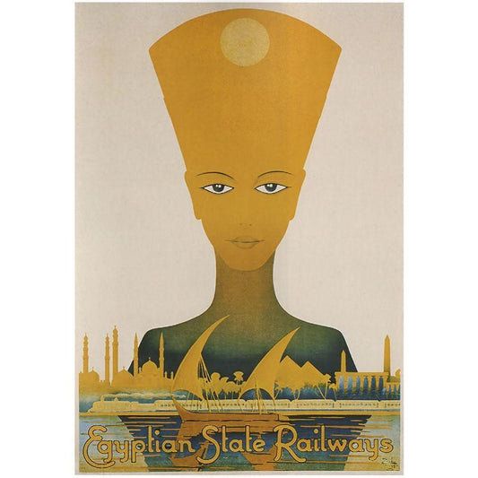 Egyptian State Railways Gold Ornate Wood Framed Art Print with Double Matting by Vintage Apple Collection