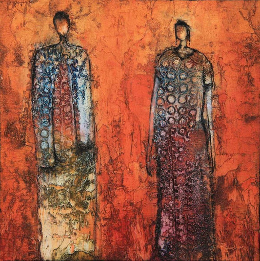 Friends at Dusk White Modern Wood Framed Art Print with Double Matting by Rauscher, Michel