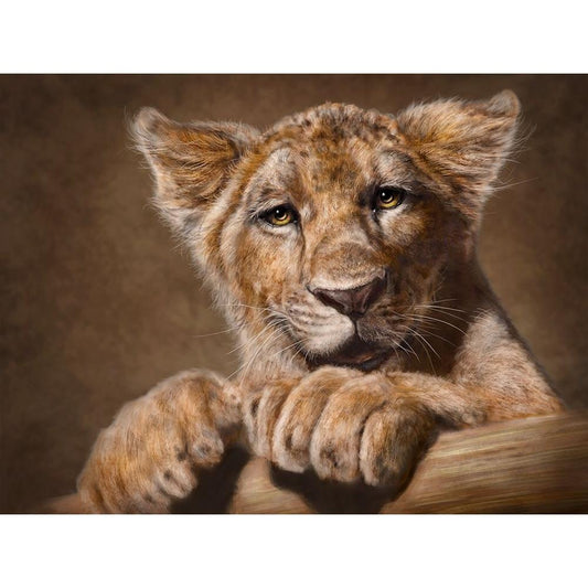 Lion Cub Gold Ornate Wood Framed Art Print with Double Matting by LaMontagne, Patrick