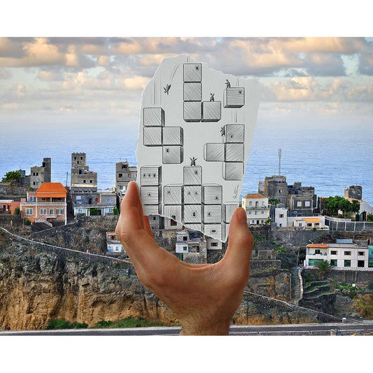 Pencil Vs Camera - Tetris Gold Ornate Wood Framed Art Print with Double Matting by Heine, Ben