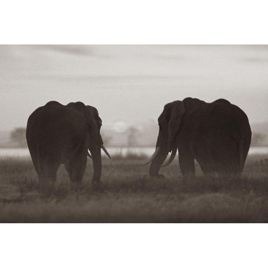 African Elephants at sunrise-Amboseli National Reserve-Kenya Sepia Black Modern Wood Framed Art Print by Fitzharris, Tim
