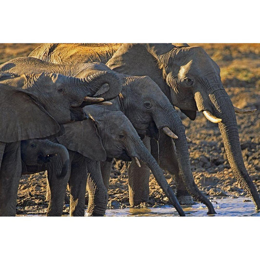 African elephant drinking-Zimbabwe Black Modern Wood Framed Art Print by Fitzharris, Tim