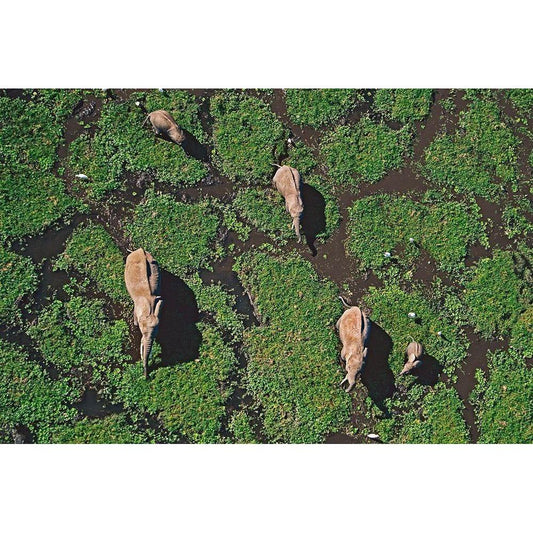 African elephants in marsh-Amboseli National Park-Kenya Black Modern Wood Framed Art Print by Fitzharris, Tim