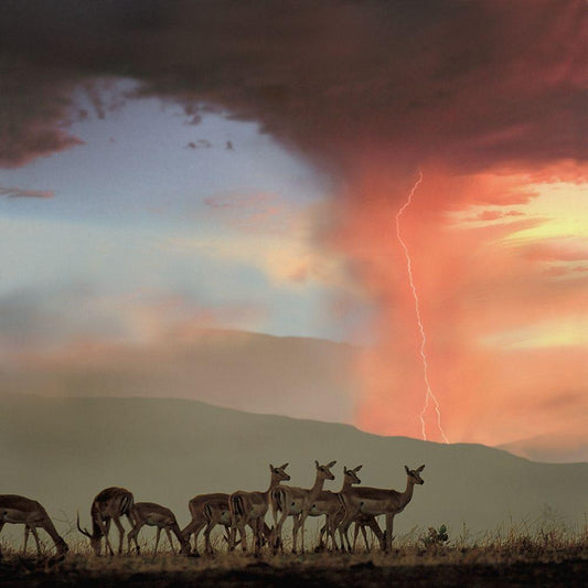 Impala and Lightning Black Modern Wood Framed Art Print by Fitzharris, Tim