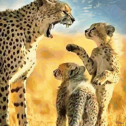 Leopard Family Black Modern Wood Framed Art Print by Medeiros, Celito
