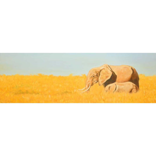 Elephant and its Little One Black Modern Wood Framed Art Print by Atelier B Art Studio