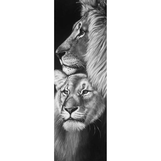 Lion and Lioness Black Modern Wood Framed Art Print by Atelier B Art Studio