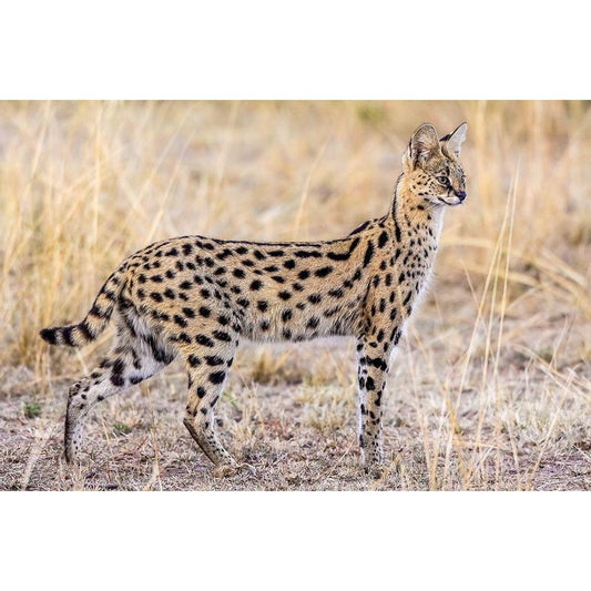 Serval Hunting Black Modern Wood Framed Art Print by C. Sink, Jeffrey
