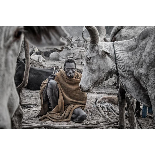 In A Mundari Cattle Camp - South Sudan Black Modern Wood Framed Art Print by Inazio Kuesta, Joxe