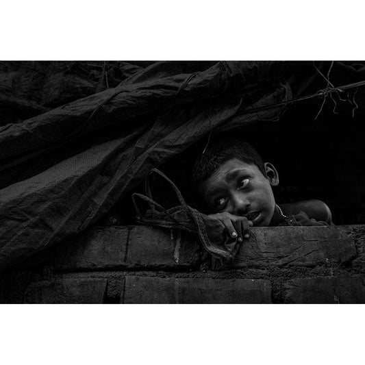 Crying Child Mundari-South Sudan Black Modern Wood Framed Art Print by Yosifov, Svetlin