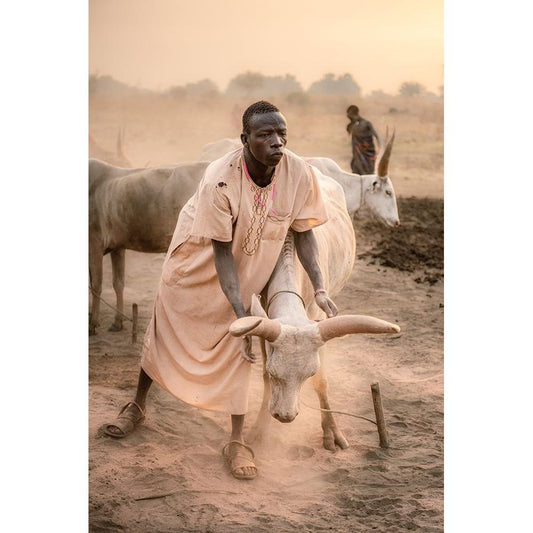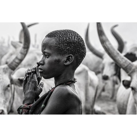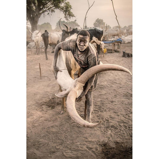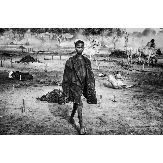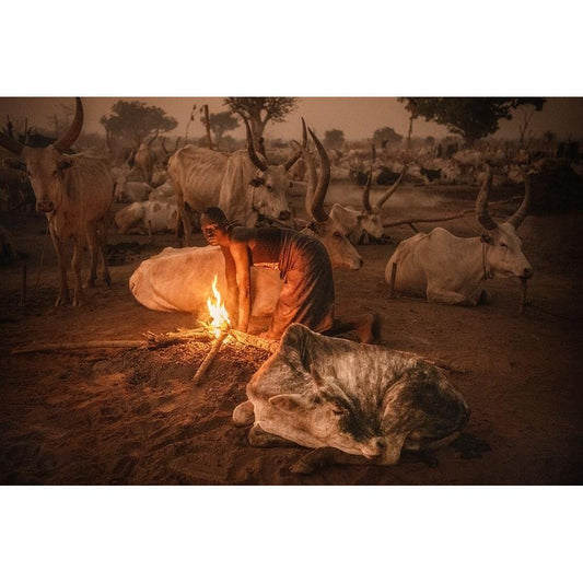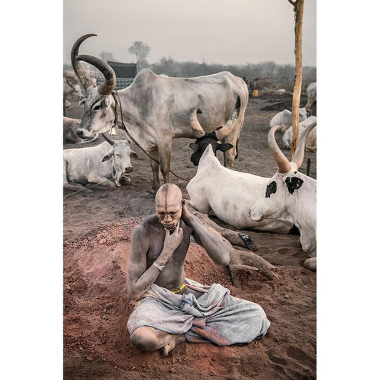 A Scene Of Life In A Mundari Cattle Camp - South Sudan Black Modern Wood Framed Art Print by Inazio Kuesta, Joxe