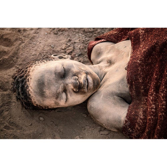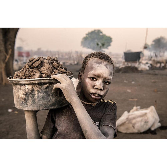 Mundari Chlid Carrying Dung - South Sudan Black Modern Wood Framed Art Print by Inazio Kuesta, Joxe