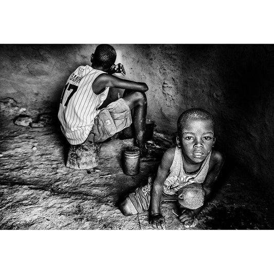 Ilchamus Tribe Children At Home - Kenya Black Modern Wood Framed Art Print by Inazio Kuesta, Joxe