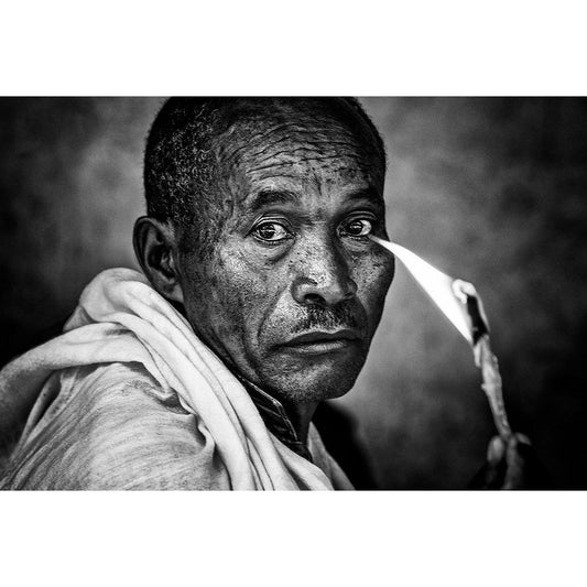 Ethiopian Man Holding A Lit Candle In A Religious Ceremony. Black Modern Wood Framed Art Print by Inazio Kuesta, Joxe