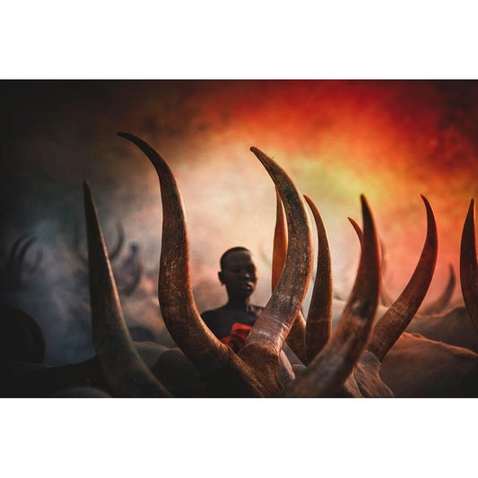 Mundari Boy Horns Black Modern Wood Framed Art Print by Yosifov, Svetlin