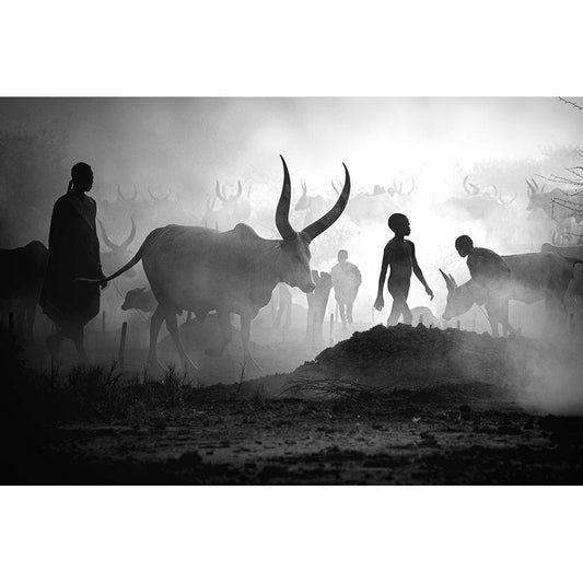 Mundari Cattle Camp Black Modern Wood Framed Art Print by Yosifov, Svetlin