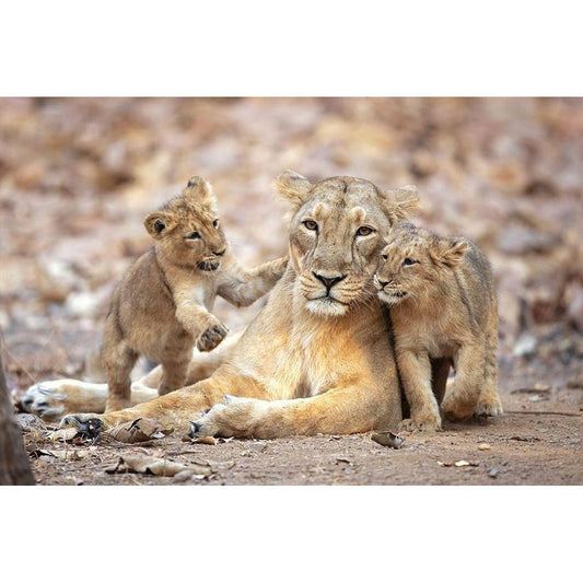 Asiatic Lioness Black Modern Wood Framed Art Print by Zygmunt, Milan