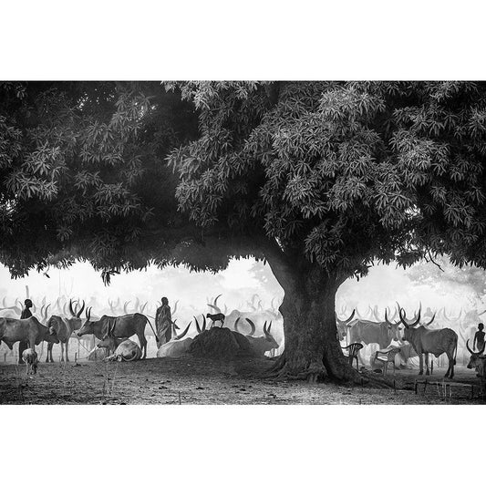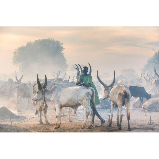 Dinka Herder Black Modern Wood Framed Art Print by Cole, Trevor
