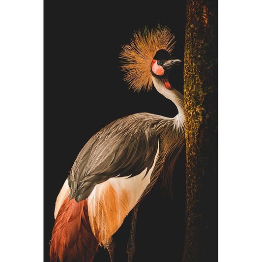 Grey Crowned Crane Black Modern Wood Framed Art Print by jealousy