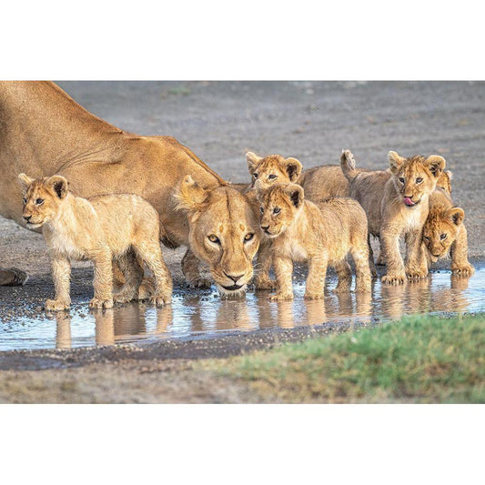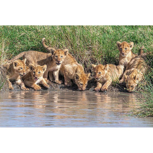 Wariness At The Water Hole Black Modern Wood Framed Art Print by C. Sink, Jeffrey