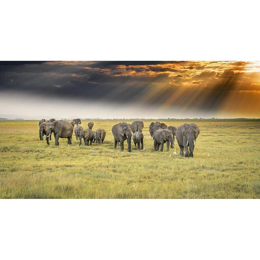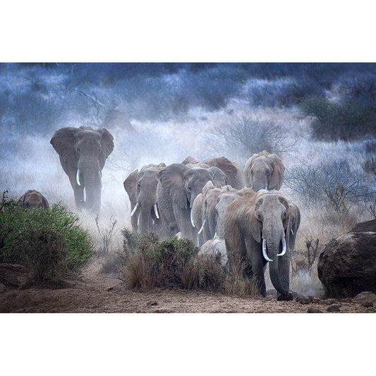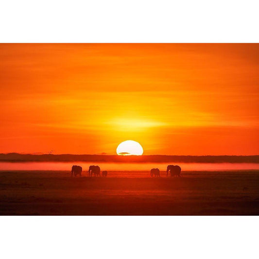 Elephants Of Amboseli Black Modern Wood Framed Art Print by George, Sherin