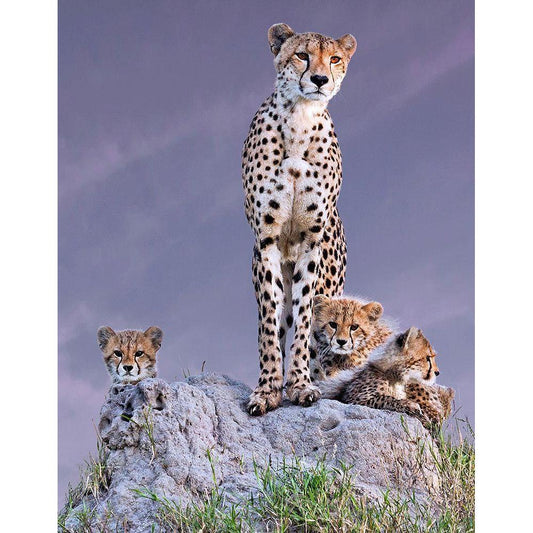 Cheetah With Cubs At Dawn Black Modern Wood Framed Art Print by Mohanraj, Arun