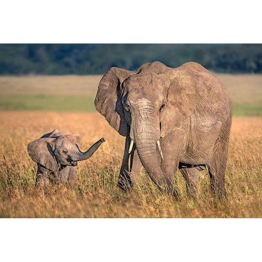 Mom Elephant With Calf Black Modern Wood Framed Art Print by Ortega, Xavier