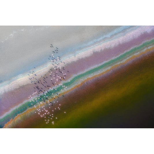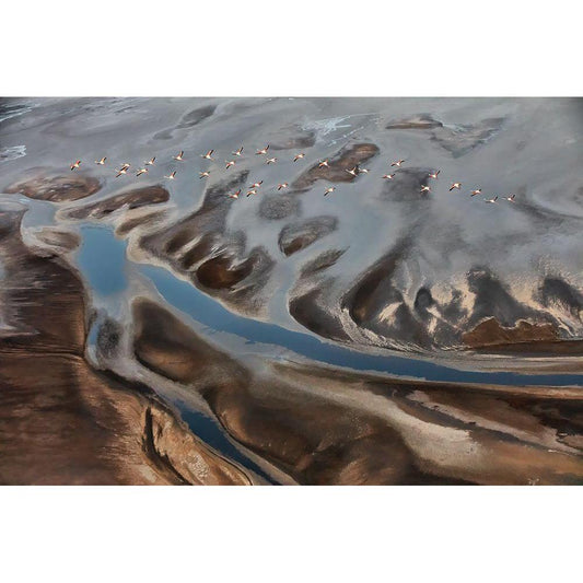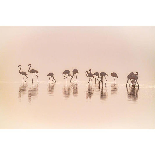 Flamingos In The Mist Black Modern Wood Framed Art Print by C. Sink, Jeffrey