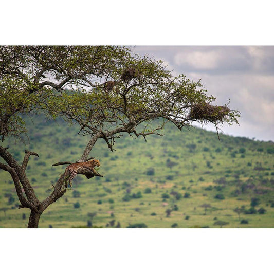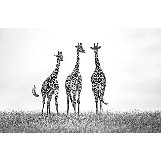 Giraffes In The Mara Plains Black Modern Wood Framed Art Print by Ortega, Xavier