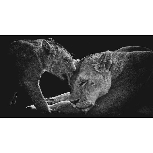 Lion Family Black Modern Wood Framed Art Print by Vidak, Vedran